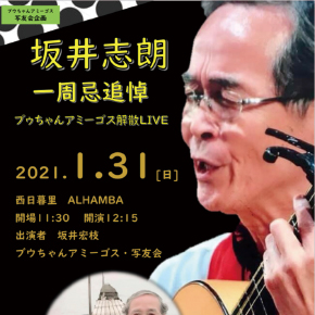 1984年金町の「もつ焼きブウちゃん」に集うフラメンコ愛好家達によって結成されたフラメンコグループ「ブウちゃんアミーゴス」。 リーダーの坂井志朗(サカイシロウ)さんは、「もつ焼きブウちゃん」の二代目店主であり、先代から引継いだ「写友会」のメンバーであり、「ブウちゃんアミーゴス」のギタリストです。 フラメンコを愛し、仲間想いのリーダー坂井さんの人柄で集まった「ブウちゃんアミーゴス」は、36年間たくさんのメンバーが在籍し、いつも活気溢れるグループでした。年に一度は、亀有リリオホール、カメリアホール、市川文化会館、エルフラメンコ、アルハムブラなどで公演・イベントを行っていました。 そのリーダー坂井さんが今年の1月に逝去され、やむなく解散することになり、2021年1月31日(日)に解散LIVEを行うことになりました。 ●ブウちゃんアミーゴス解散LIVE 日時:2021年1月31日(日) 開場11:30 開演12:15 会場:アルハムブラ (東京/西日暮里)http://alhambra.co.jp/ 料金:チャージ¥1,200 出演:坂井宏枝、ブウちゃんアミーゴス、写友会